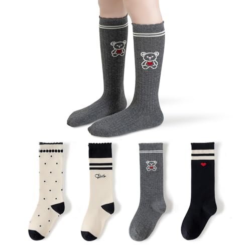 [FAMOO] ハイソックス キッズ 3足セット 靴下 女の子 ラインソックス ボーダーソックス 子供 ニーハイチーム 運動会 通園 通学 年間通用 ブラック+ホワイト+ダークグレー 17.0~19.0㎝