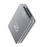 CFexpress Type A/BとSDカードをサポートするポータブルリーダー。USB 3.2で10Gbpsの転送速度を実現。デュアルスロットで便利。