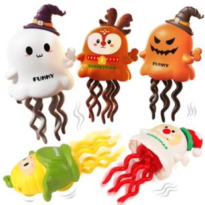 Mercs-X 5点セット 発条ねじねじおもちゃ 子供用 踊るタコとイカのおもちゃ、可動式 動くミニフィギュア ハロウィン&クリスマステーマ 八本足ダンス玩具 3歳以上 プレゼント向け