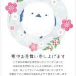 年賀状じまいハガキ 寒中見舞い 10枚 私製はがき。アルファプリントサービス製 S-NJ109 梅とシマエナガデザイン。明るく温かみのあるデザインで、冬の挨拶にぴったりのアイテムです。読みやすい文字サイズです。