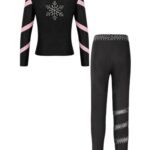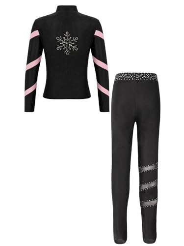 [Sywiyi] 子供用の女の子向けフィギュアスケートウェア キラキラのラインストーン付き レギンス付きのアイススケートジャケットセット 体操用トラックスーツ ピンク 15-16歳の高価買取