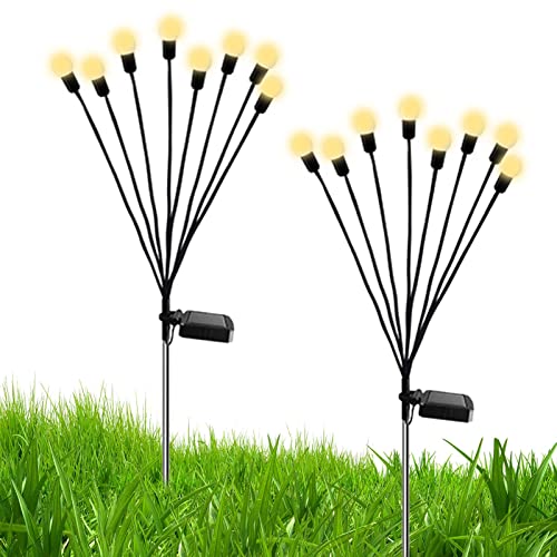 2個の防水ソーラーガーデンライト。ソーラーパワーで運用し、庭や小道を美しく装飾。夜に優しく揺れるホタルのような光で、幻想的な雰囲気を演出します。