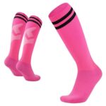 サッカーソックスジュニア用のカーフソックスです。滑り止め付きでスポーツに最適。大人と子供が使用可能なフリーサイズ、ピンク色で快適な履き心地を提供します。