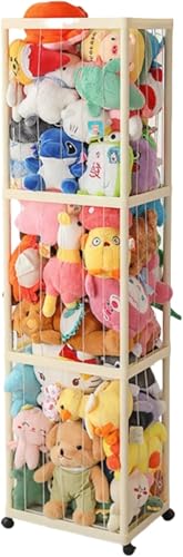 Ladfrolの360°回転輪ぬいぐるみ収納棚は、大容量の展示ケースで、ネット付き収納袋を備えています。寝室や子供部屋に最適で、最大85個の人形が収納可能です。サイズは42*32*154 cm、アップグレード版で伸縮ひも付き。