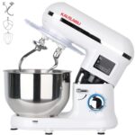 KALELAISUスタンドミキサーは5.5L大容量で、99分のタイマー機能やダブル攪拌フックを搭載。4種類のアタッチメントと七段階速度調節が可能。パン作りや混ぜ、泡立てに対応する1200Wハイパワーモーターを搭載。家庭用と業務用に最適。