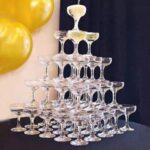 WhiteForestのシャンパンタワー用グラス120個入り。食器洗い機対応で、家庭パーティーやウエディングに最適。透明プラスチック製でファッション感あり、簡単に組み立て可能。