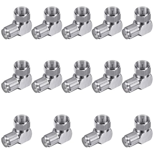 RG6 Fタイプ90度同軸オス-メスアダプター14個セット。壁掛けテレビやモデム、衛星受信機に最適。スペースの節約に役立つL字型設計。