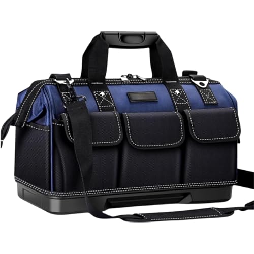 高強度600Dオックスフォード生地使用の大開口工具収納バッグ。防水で底板補強があり、折りたたみ可能。ショルダーストラップ付きで車載や携帯に便利。サイズは47.5*22*31cm。
