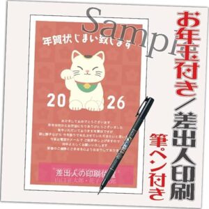 年賀状 2026 お年玉付き 年賀 はがき【4枚 筆ペン付き】午年 うま年 年賀状じまいシール付 印刷 プリント 4枚 差出人印刷込み(デザイン:B0187)印刷する差出人住所はご注文時の「お届け先住所」+「氏名」を印刷いたします