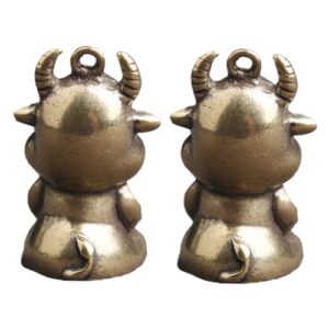 [HOOTNEE] 2個 キー チェーン ペンダント ミニ 牛 デスクトップ オーナメント DIY 牛 キー チェーン DIY ハンギング オーナメント ミニ 牛 デスクトップ 装飾 真鍮 牛 クラフ