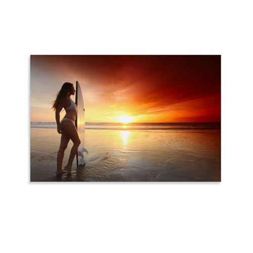 サーフィン サーフ 女性 ビーチ 海 写真 フォト 壁 壁紙アート ポスター 印刷 ポスター キャンバス ウォールアート 画像 絵画 現代 芸術 壁の絵 け ソファの背景絵画 16x24inch(40x60cm) Unframe-style 高価買取中