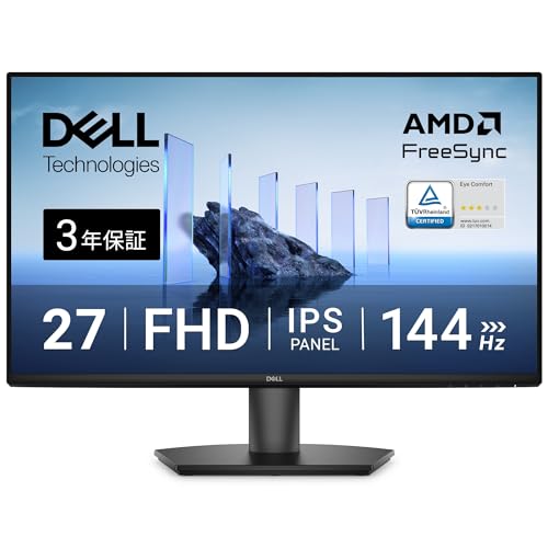 Dell SE2726H 27インチモニターは、FHD解像度IPSパネルを搭載し、非光沢仕上げ。144Hzリフレッシュレート、1ms応答速度、AMD FreeSync™対応。HDMI 1.4ポート×2あり、傾き調整機能付き。3年保証。