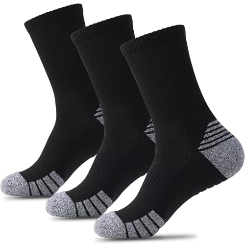 [HWVICTORYV] 靴下 メンズ レディース スポーツソックス 厚手 底パイル 3足セット 綿 抗菌 防臭 クルーソックス 作業用 ウォーキング ランニング バドミントン テニス くつ下 くつした 春夏秋冬 L(黒) 高価買取中
