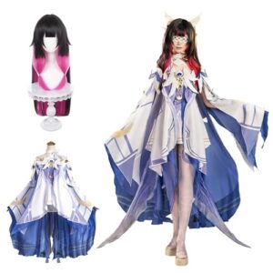 [神併良品] コロンビアーナ コスプレ ウィッグ付き 原神 セット 愚人衆執行官 月の乙女 月神 クータル コスプレ制服 大人用 仮装 撮影 クリスマス 文化祭 忘年会 お祭り cosplay コスチューム (コロンビアーナ ウィッグ付き,S)
