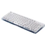 AOUDNのアイスキューブ透明ワイヤレスBluetoothキーボードとマウスセット。機械式デザインで、オフィスや自宅でも静音性を重視。ホワイトカラーでスタイリッシュ。