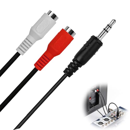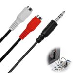 RCA 3.5mm 変換ステレオミニプラグケーブル。3.5mmオスをRCA赤白メスに変換。ポータブル機器用で、音声接続が簡単。短尺モデルで扱いやすい。