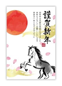 年賀状 2026 お年玉付き 年賀 はがき【4枚 筆ペン付き】午年 うま年 年賀状じまいシール付 印刷 プリント 4枚 差出人印刷込み(デザイン:HA036)印刷する差出人住所はご注文時の「お届け先住所」+「氏名」を印刷いたします