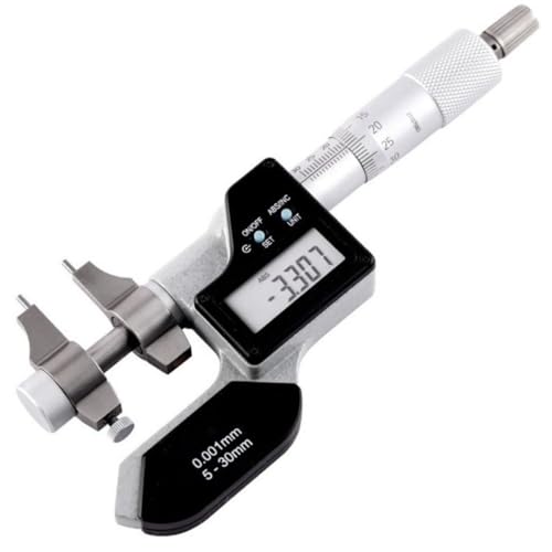 デジタル内側マイクロメーター(5-30mm)は、精密な内径測定を実現。LCD表示で読み取りやすく、測定精度±0.01mmと高精度。ロック機能付きで安定した測定が可能です。