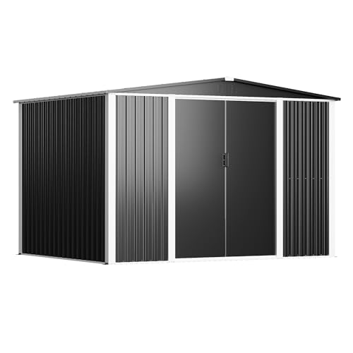 屋外大型物置 メタルシェッド 組み立て式倉庫 プレハブ倉庫 ガレージ 車庫 ストックヤード 防水 防錆 DIYキット (10×10 フィート)