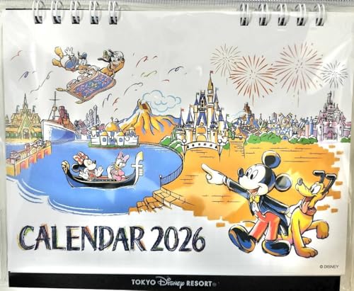 ミッキー&フレンズの2026年卓上カレンダー(令和8年)は、東京ディズニーリゾート限定で、月曜始まりのデザインです。可愛らしいキャラクターが月ごとに登場し、デスクを彩ります。