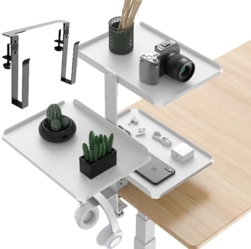 HACYURI デスク収納トレイアームスタンド 多用途オーディオインターフェース スチール製 省スペース2層 卓上文房具整理 コンパクトヘッドセットラック 机上小物簡単取り付け (ホワイトコンピューターラック+収納ブラケット) (ホワイトコンピューターラッ+収納ブラケット)の製品情報