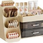 HACYURIの多機能引き出し化粧品収納ボックスは、大容量でメイクを整理できるデスクオーガナイザー。クリームホワイトのデザインで、おしゃれな収納が可能です。口紅やスキンケア用品に最適。