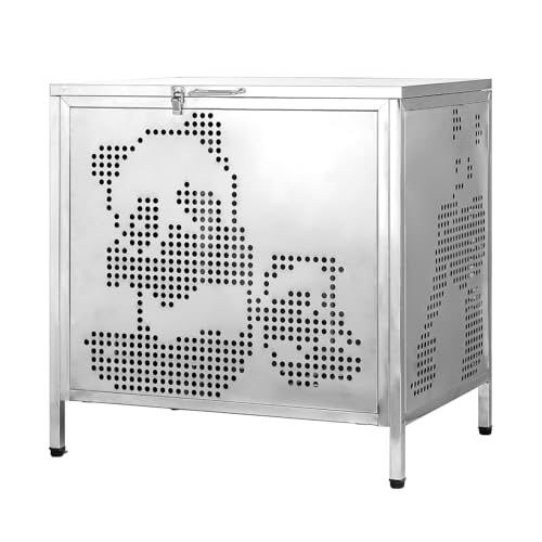 大型160Lの屋外ゴミ箱。パンダデザインでおしゃれ、ふた付きのスチール製。カラスや野良猫対策、ゴミ荒らし防止に最適。防臭、防錆機能で組立式、アジャスター付き。サイズは63×45×62cm。