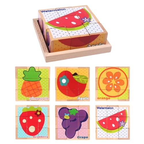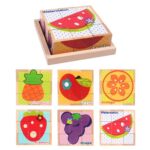 キューブパズルの3D木製知育おもちゃ。形合わせや組み立てが楽しめ、男の子・女の子向け。動物や果物、昆虫、乗り物などのデザイン。保育園や誕生日プレゼントに最適。