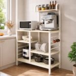 Anovaraのレンジラックは幅88cm、奥行40cmの大型対応で、省スペースながらおしゃれなデザイン。キッチン収納や食器棚としても最適なナチュラル木色です。