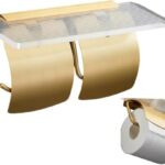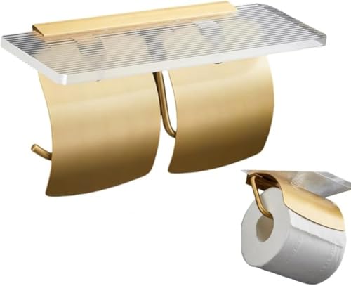 GOTRAFYのトイレアルミニウム+アクリルペーパーホルダーは多機能棚付きで、取り付け方法を2種類から選べます。エレガントなデザインで、トイレ・バスルーム・キッチンに最適です。(カバー付き – ショート, ゴールデン)