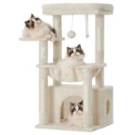 Heyblyキャットタワーは、大型のふかふか猫バスケットが特徴の据え置きタイプ。省スペースで広めの猫ハウス隠れ家、コンパクトでトップ展望台付き。シザル麻爪とぎポールとおもちゃボール付きの室内用猫家具。(ベージュ)