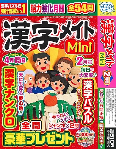 漢字メイト Mini 2026年2月号は、漢字学習に役立つ情報や練習問題が満載の雑誌です。新しい漢字や読み方、書き方を楽しく学べる内容になっています。