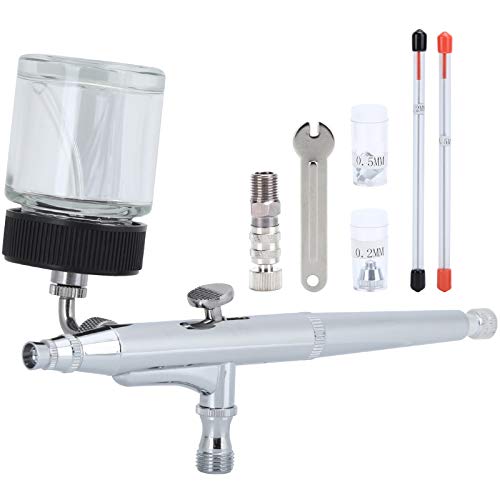 20ml エアブラシスプレーガンは、ダブルアクションで重力フィード、0.2mm/0.3mm/0.5mmの針付き。メイク、ネイル、ケーキデコレーションに最適な精密制御が特徴。