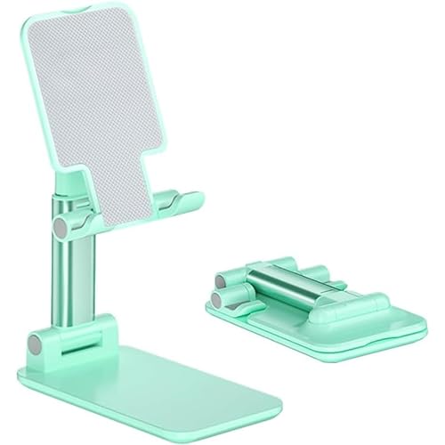グリーンの携帯電話スタンドは、角度と高さが調節可能で、全ての携帯電話に対応。オフィスでの使用に最適で、折りたたみ可能です。
