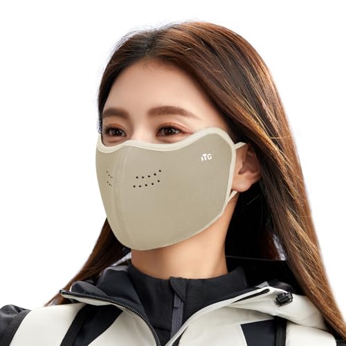 テディフリースの冬用保温マスクは3D立体デザインで、防風・防寒・UVカット(UPF50+)機能を備えています。洗える素材で小顔効果もあり、個包装で便利。カーキ色でスタイリッシュ。