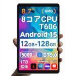 2026年新型8インチタブレット、Android 15、12GB RAM、128GBストレージ、1TB拡張可。8コアCPU、5000mAhバッテリー、広視野角IPSディスプレイ搭載。顔認証・児童モードあり。