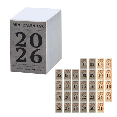 PAVIKE 2026 ミニカレンダーは卓上用の手引きカレンダーで、小さなサイズ(35mmx51mm)が特徴です。日めくり形式で、オフホワイトのデザイン。入学プレゼントにも最適なスケジュール管理アイテムです。
