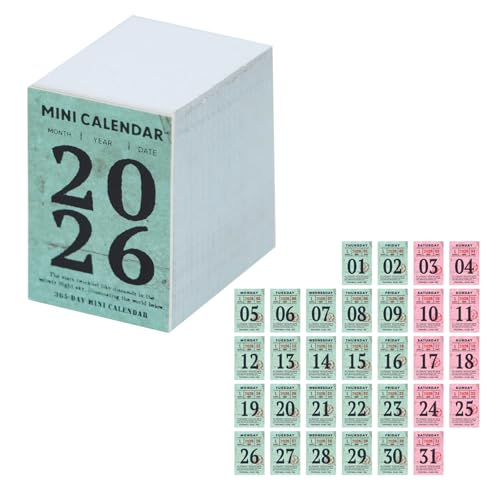 PAVIKE 2026 ミニカレンダーは卓上で使える日めくりタイプ。サイズは35mmx51mmで、青緑とピンクのデザイン。小さなスケジュール管理に最適な入学プレゼントにぴったりです。