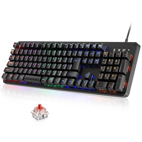 OUSEITECH OU108は、日本語配列のフルサイズメカニカルゲーミングキーボードです。USB有線、108キー、赤軸、LED RGBバックライト、ホットスワップ対応、1年間保証付き。