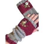 秋冬にぴったりの女性用鳥刺繍ハーフフィンガー手袋。伸縮性のあるニット素材で、指なしデザインがタイピングや運転に便利。子供用のかわいい帽子とセットで、かわいらしさと実用性を兼ね備えたアイテムです。