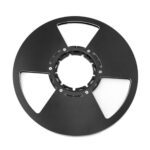 AKFIBNのテープリールは、10インチサイズで3穴仕様の空巻き取りリール。レッドアルミ製、研磨済みのハブエッジが特長。テープレコーダー用のブラックモデルです。