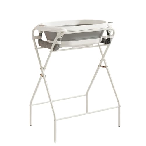 HeartTrendのベビー折りたたみバスタブサポートセットは、新生児向けの安全なバスタブで、背もたれサポート付き。折りたたみ式の洋服ラックも付属し、グレーのシンプルデザインで便利。