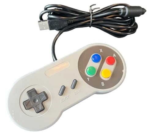アウトレットジャンクションのPC USBコントローラー(SFCタイプ)は、180cmのケーブル長を持つ高品質なゲームコントローラーです。快適な操作性とレトロなデザインが特徴で、様々なゲームに対応しています。