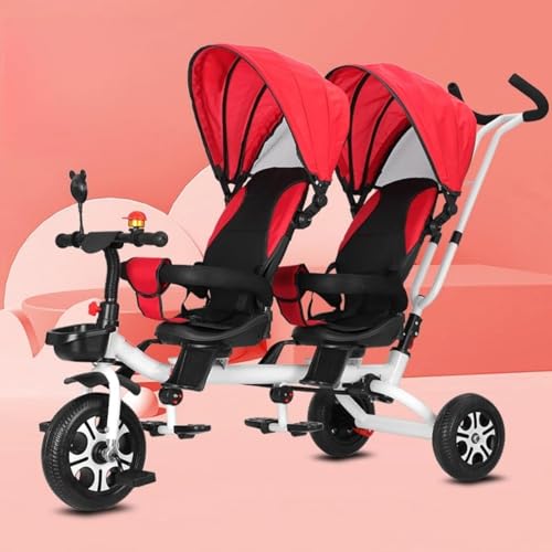 【Banefu】新登場双子用三輪車、 二人乗り、タンデム自転車、双子用ベビーカー、回転式、サンキャノピー調節可能、背もたれ調節可能、耐衝撃フレーム、耐荷重100kg、対象年齢1~5歳 乗用玩具 男の子 女の子 子供の日 誕生日 プレゼント ギフ (赤いフォームホイール)の高価買取