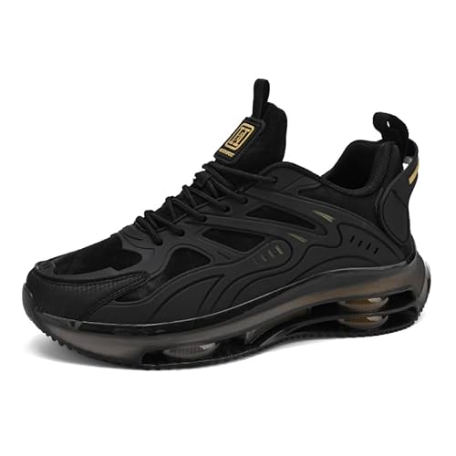FKHKのランニングシューズは、超軽量で防水性に優れ、厚底デザイン。幅広で安定感あり、おしゃれなブラック。ジョギングやスポーツ、通勤にも最適なエアークッション付き。サイズは28.0cm、日本の靴サイズに準拠。