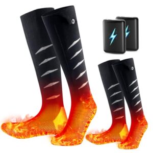 [THEKUKU] 電熱ソックス 電気靴下 バッテリー式 6000mAh*2大容量 スキーソックス USB充電式 4段階温度調節 暖房靴下 高伸縮性 速暖 足元ヒーター 登山/スキー/スポーツ用 水洗い可 防寒グッズ 男女兼用 23~27cm適用 2足入り(ブラック)