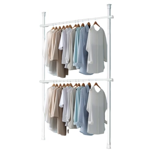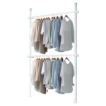 QAMITAL 洋服ハンガー 伸縮式 室内物干し 室内干し 高さ調節可能 2層式 パンチフリー 天井床置き つっぱり式 110~300cm ブラック (B,ホワイト)の製品情報