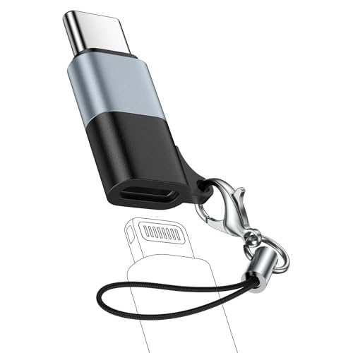 ライトニング to USB C変換アダプタで急速充電とデータ転送が可能。防紛失ストラップ付。iPhoneやMacBook、iPad、Xperia、Galaxy等に対応。イヤホン非対応。