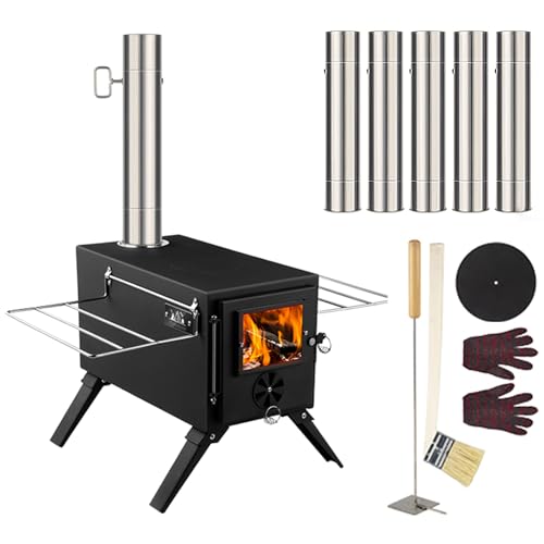 YNAGYESの小型薪ストーブは、折りたたみ式で携帯に便利。冷間圧延鋼材製、煙突とグリッド棚付き。耐熱ガラス窓で焚き火を楽しみながら、キャンプやテント内での調理や暖房が可能です。
