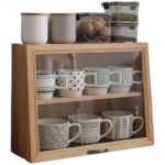 QAMITAL 木製ヴィンテージデスクトップキャビネット ダブルシェルフ 蓋付き 収納ボックス フィギュア/マグカップ/ティーセット/化粧品用 ナチュラルアンティーク (ブラウン L) (Small,ナチュラル)の高価買取